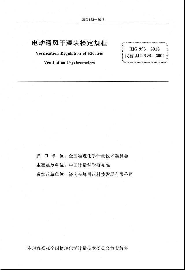 > 电动通风干湿表(JJG 993-2018检定规程)
