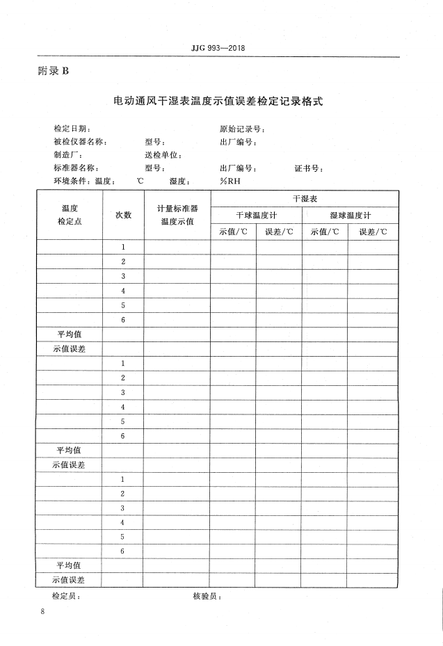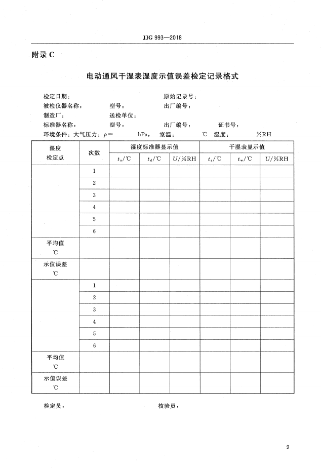 > 电动通风干湿表(JJG 993-2018检定规程)